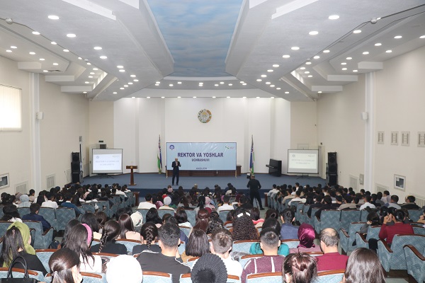 Rector of the university Akramjon Yuldashev made his comments on the above two issues. In particular, the rector briefly summarized the essence of the address to the Oliy Majlis, highlighting the President's main focus on science, and meeting with scientists as a continuation of these ideas, the development of the economy only depends on science. The emphasis is that it sets the direction for the university administration and faculty. The rector said: "Particularly with a focus on math, biology, and chemistry was one of the main reasons why we have a meeting today with undergraduate students in Biology and Chemistry". Referring to the university's efforts in combating corruption, he noted that the establishment of a direct bot to the rector had been successful. In particular, it was reported that two teachers' contracts were canceled as a result of applications filed by this bot, and two teachers were on the verge of termination. The rector also addressed the students and said that they would help in the fight against corruption by providing accurate information in case of corruption, and that corruption could be overcome with cooperation.