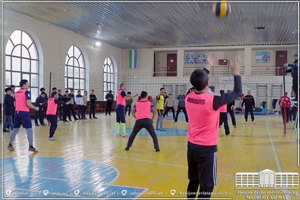 Joriy yilning 7-9 yanvar kunlari Andijon davlat universitetining “Barkamol avlod” sport zalida 14-yanvar “Vatan himoyachilari” kuni munosabati bilan sportning voleybol turi bo’yicha o’qituvchi va xodimlar o’rtasida “Rektor kubogi” musobaqalari o’tkazildi.