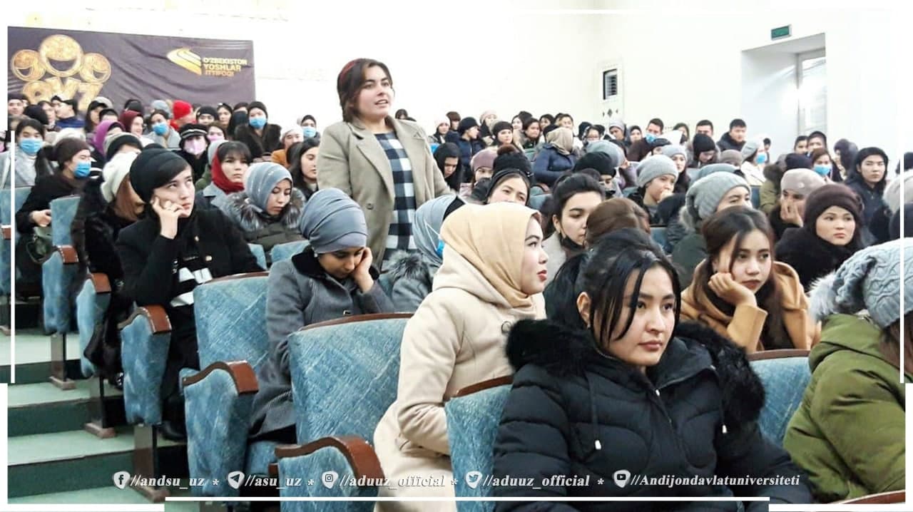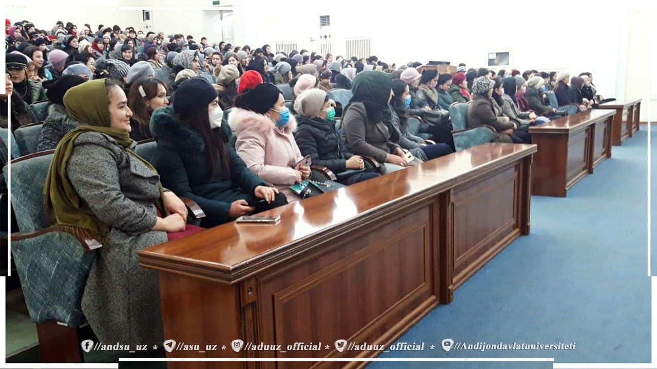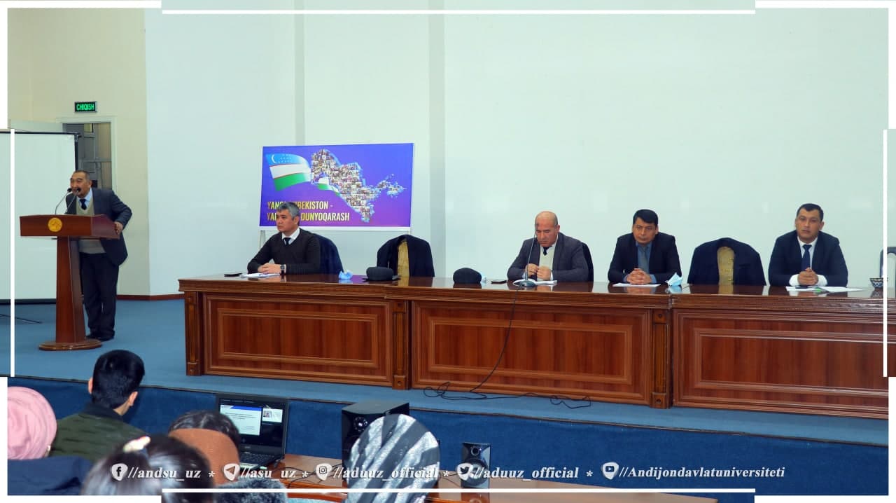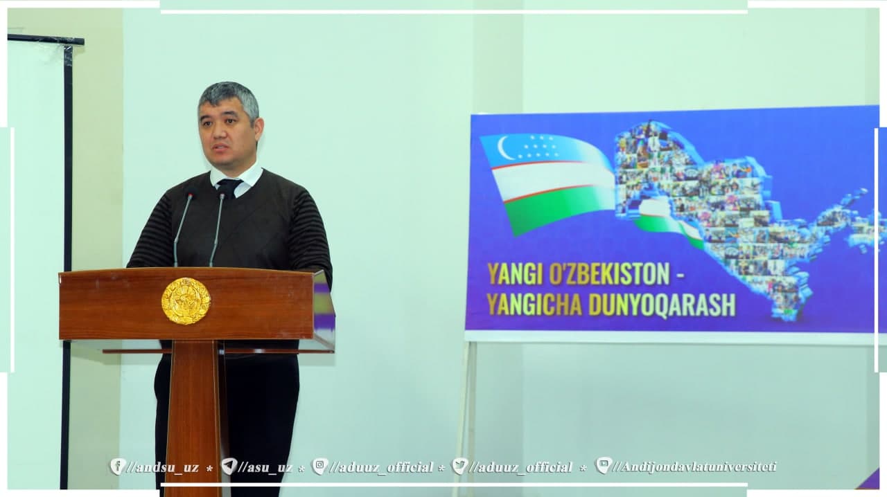 Andijon davlat universitetida Prezidentning 2020-yil 29-dekabrda Oliy Majlisga yo'llagan murojaatnomasini o‘rganish bo'yicha Fuqarolik jamiyati kafedrasi professor-o'qituvchilari tomonidan 18-yanvardan boshlab har bir fakultet talabalari uchun o‘quv seminarlari tashkil etilmoqda.