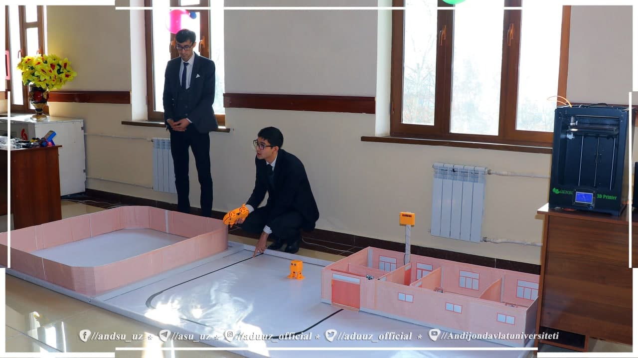 Dastavval universitetimiz magistratura bosqichi talabalari Muhammadxon Mahmudov, Abdumalikov Abduqodir va 4-bosqich talabasi Ilhomjon Abduraimovlar tomonidan ixtiro qilingan o’zi yo’l topuvchi, belgilangan yo’l bo’yicha yuruvchi, ikki oyoqlik robotlar hamda aqlli uy loyihalari taqdimoti o’tkazildi. Ushbu robototexnikalar namoyishi yig’ilganlarda katta tassurot qoldirdi.