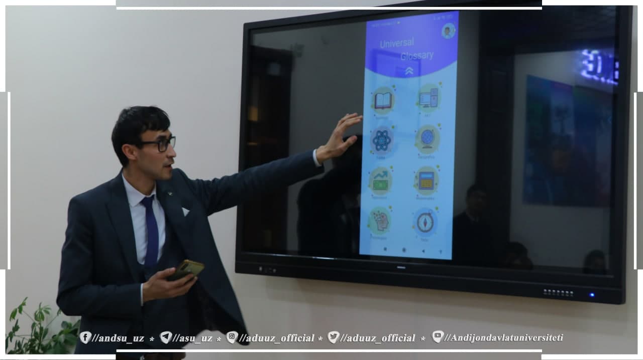 Axborot texnologiyalari kafedrasi o’qituvchilari Nurmuhammad Alimqulov, Muslimbek Olimov, Maxsudbek Jo’raboyev, magistratura bosqichi talabalari Muhammadxon Mahmudov, Abduqodir Abdumalikovlar talabalarga va tashrif buyurganlarga o’zlari tomonidan yaratilgan ixtirolar va dasturlari haqida ma’lumot berib taqdimotlarini o’tkazdi.