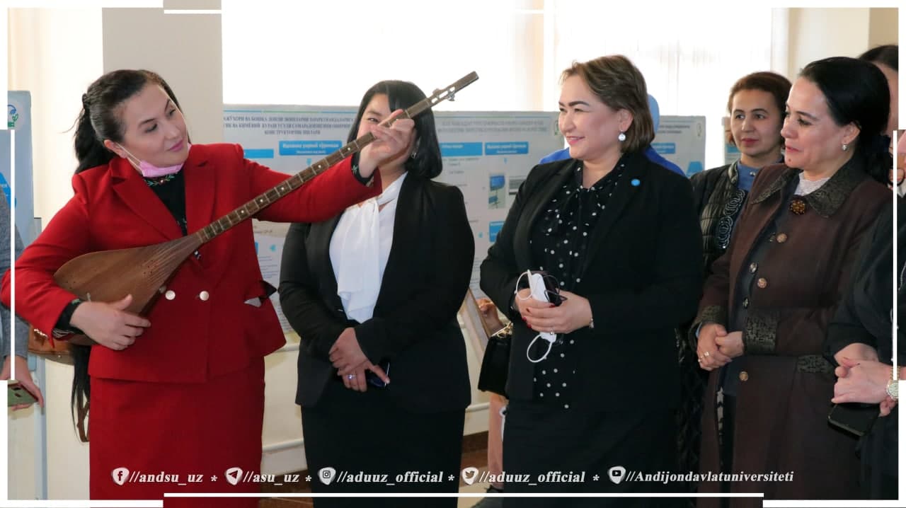 Mehmonlar dastlab milliy kiyimlar va qoʻl mehnati na'munalari koʻrgazmasi, talaba qizlar tomonidan chizilgan tasviriy san'at asarlari galereyasini tomosha qilib, ijodkorlar bilan samimiy suhbat qurdilar. Musiqa ta’limi yoʻnalishi talaba qizlari tomonidan ijro etilgan diltortar navolar esa mehmonlarga koʻtarinki kayfiyat ulashdi.