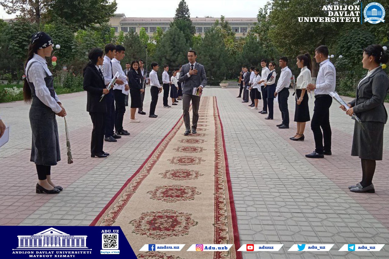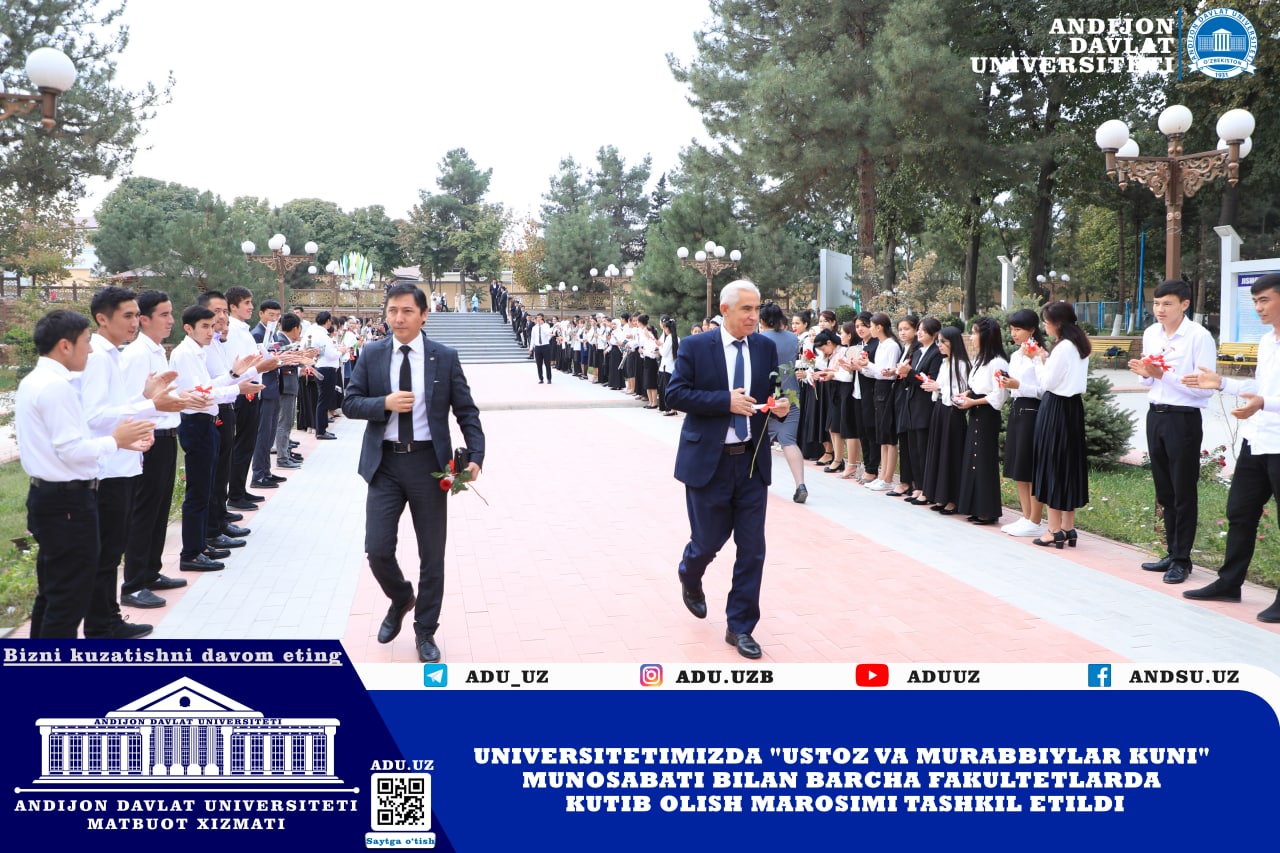 Bugun, 30-sentabr kuni Andijon davlat universitetidagi barcha fakultetlarda dekan va dekan o'rinbosarlari boshchiligida 1-oktabr "Ustoz va murabbiylar kuni" munosabati bilan tadbir tashkil etildi.