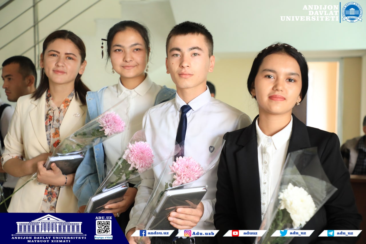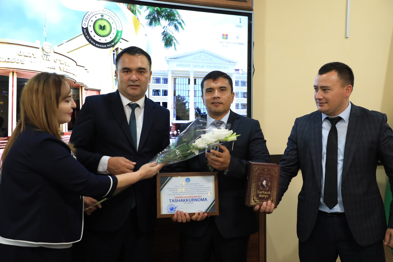 Mazkur tadbirda universitetimizdagi jonkuyar, fidoyi professor-o'qituvchilarning ta'lim-tarbiya tizimini rivojlantirish yo'lidagi xizmatlari e'tirof etildi. Andijon davlat universitetining faol, iqtidorli talabalari har bir o'qituvchini ko'tarinki ruhda bayram bilan tabriklab, guldasta taqdim etdilar.